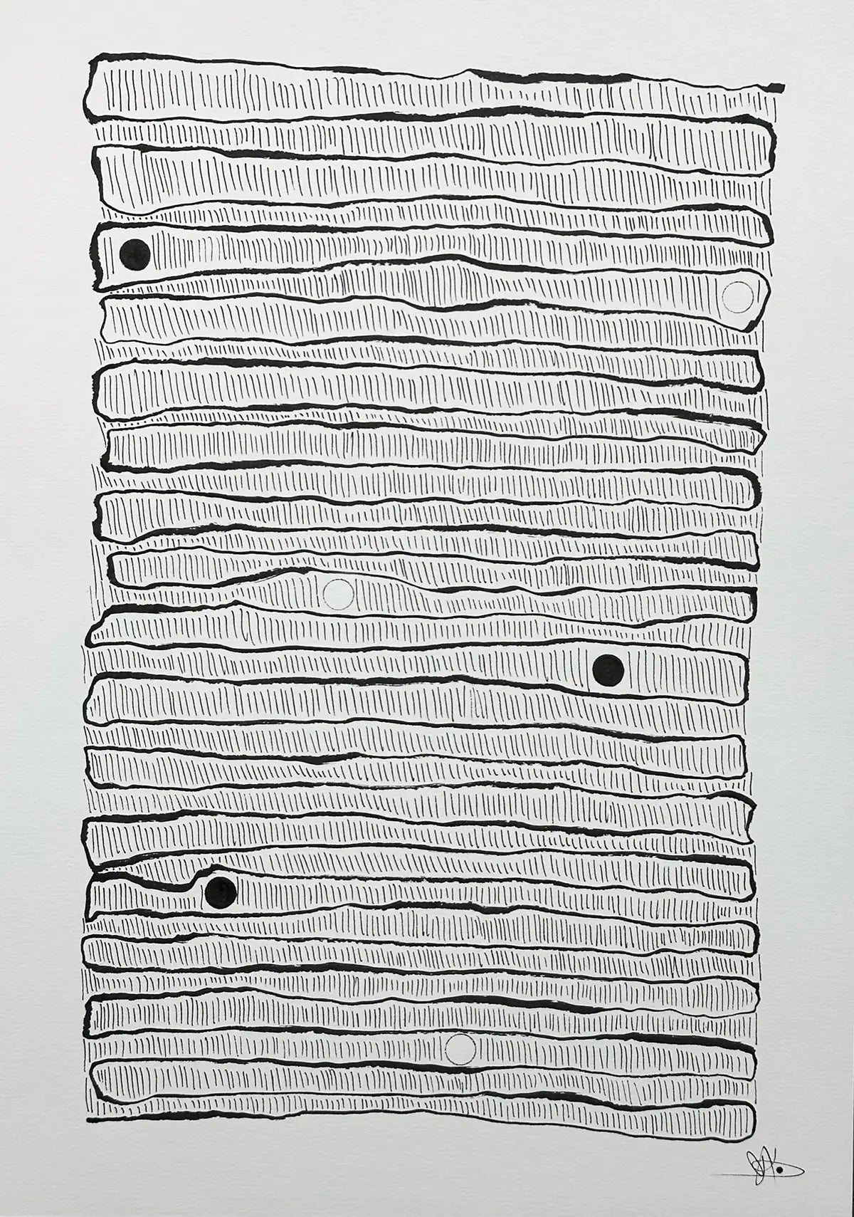Intricate and dainty abstract piece, pen on paper. The circles represent setting suns, and each line represents a person. One setting sun, from a thousand different perspectives.
